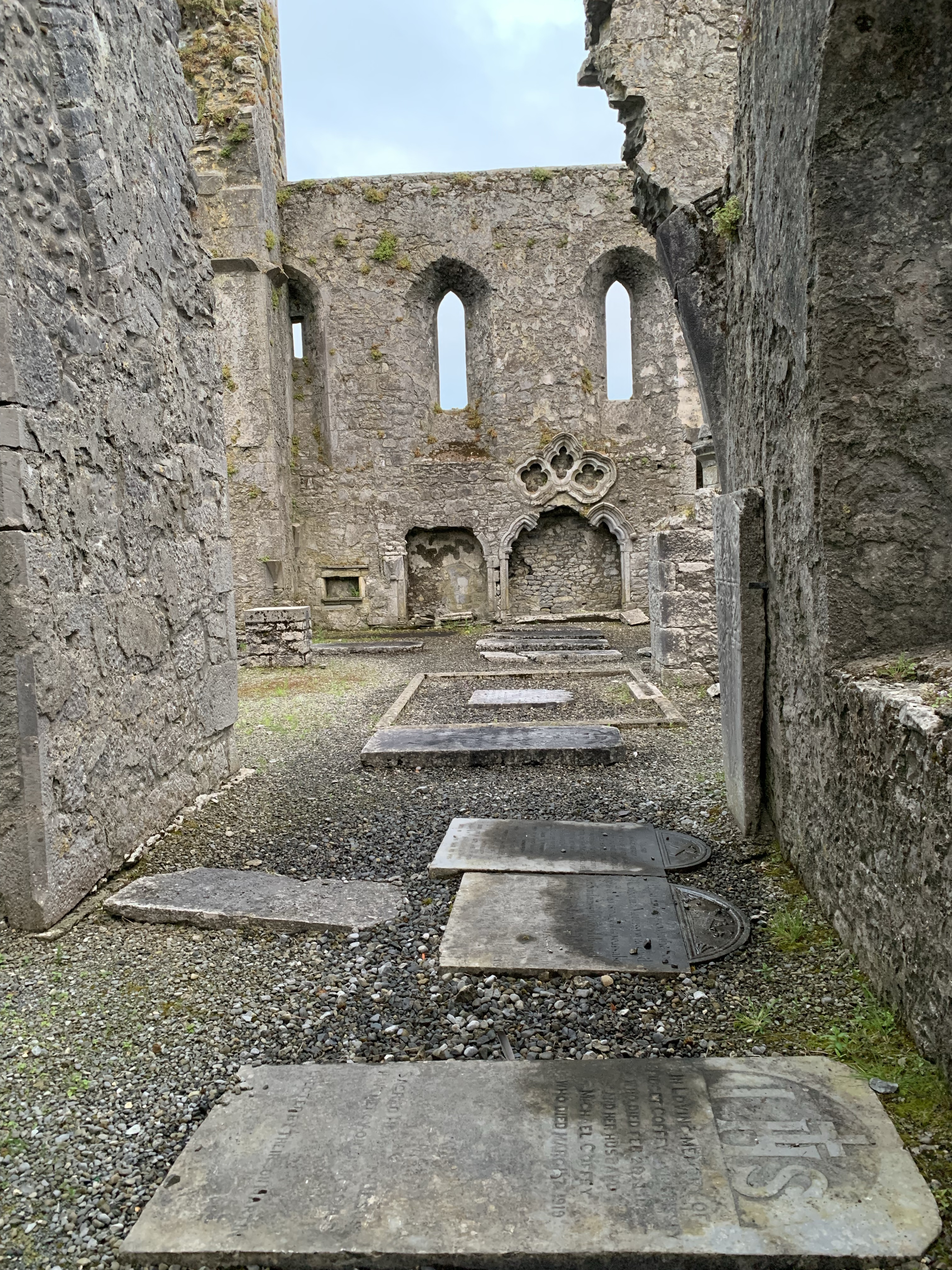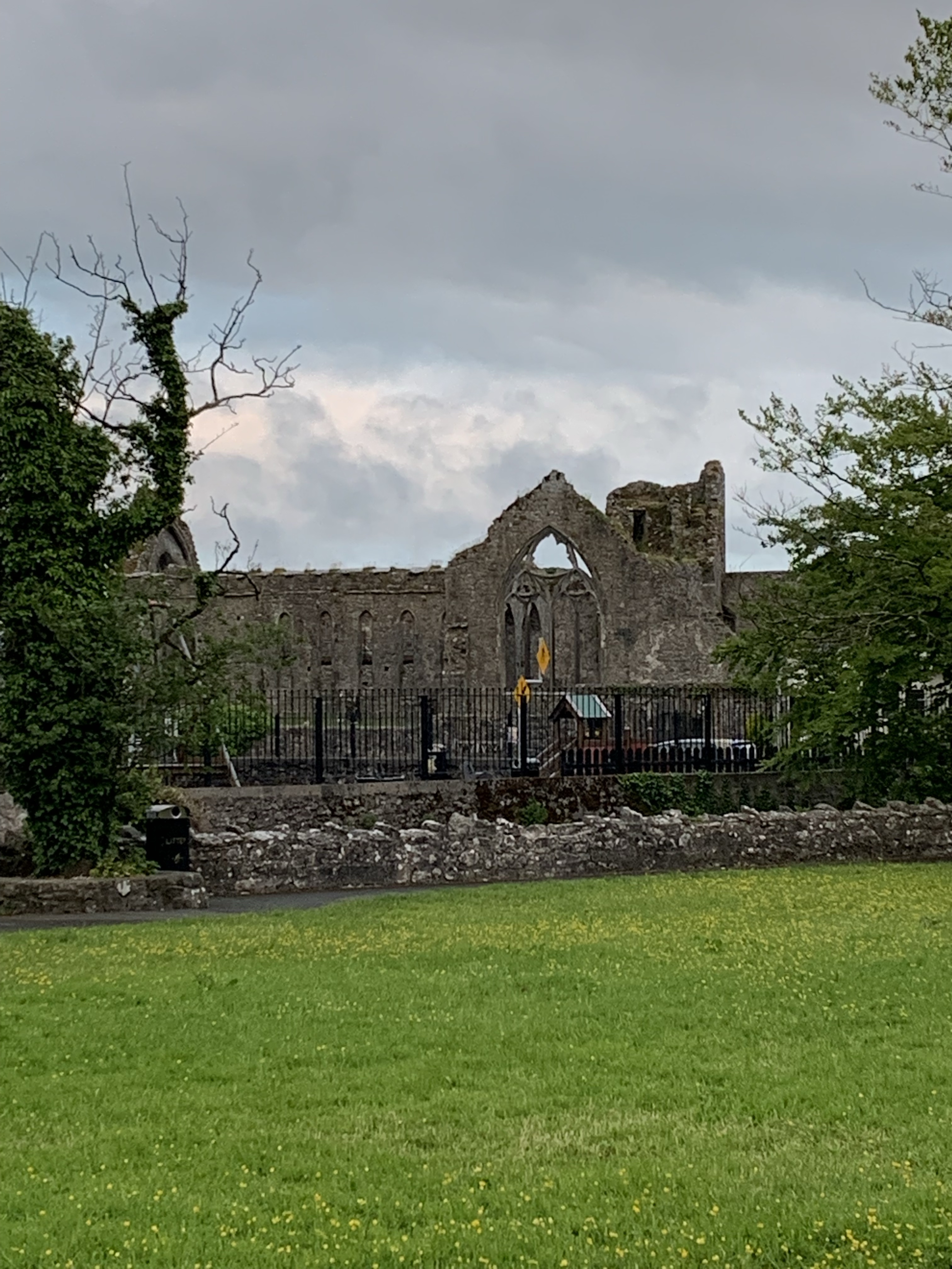 It stays light here until 10 pm! We ate supper at an Irish fast food restaurant (“Supermacs”)…one order of fries would have been enough for all three of us. We headed over to another pub for a bit. This one was really for the locals…it was super quiet. We walked around the local ruins on the way back to the Airbnb.