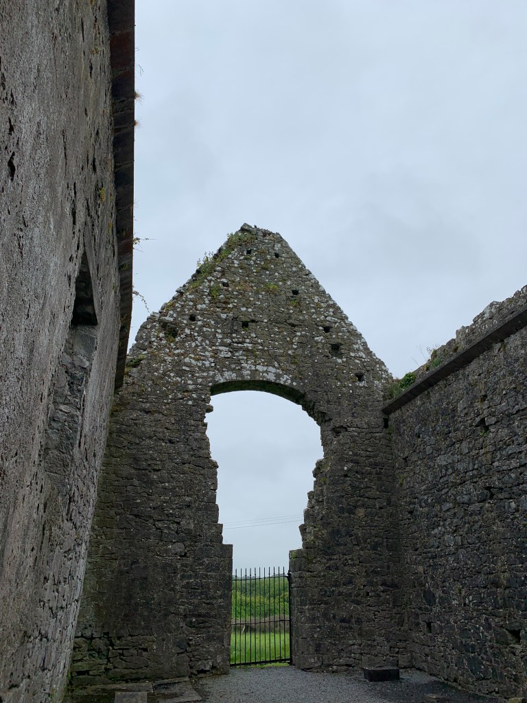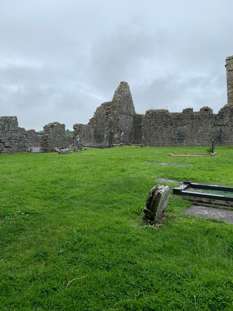 First stop, Clare Abbey: ruined monastery; founded in 1189. Interestingly, there have been some burials (or at least, memorials) in the last 20 years. Apparently there is some trouble with vandalism 😦