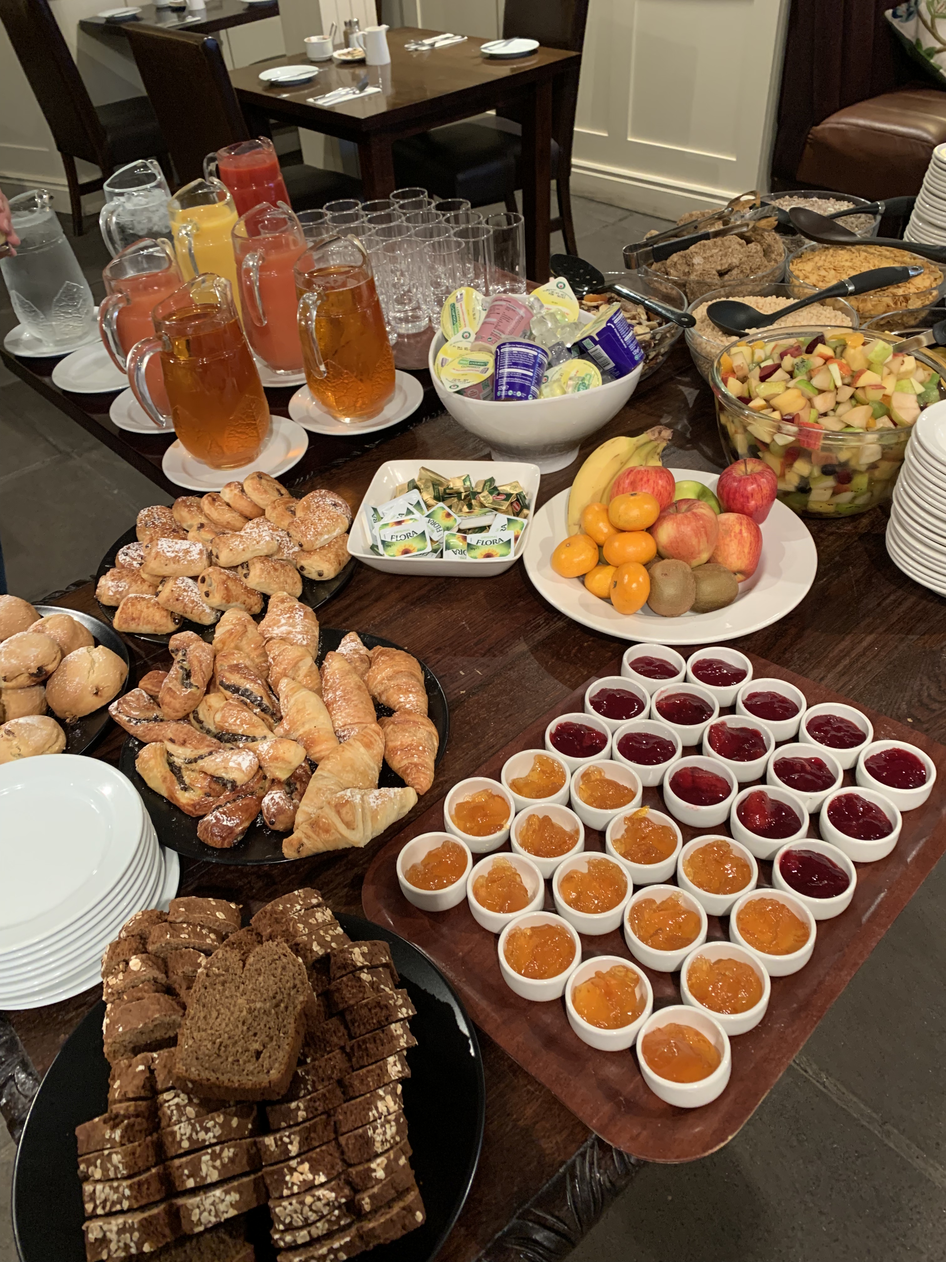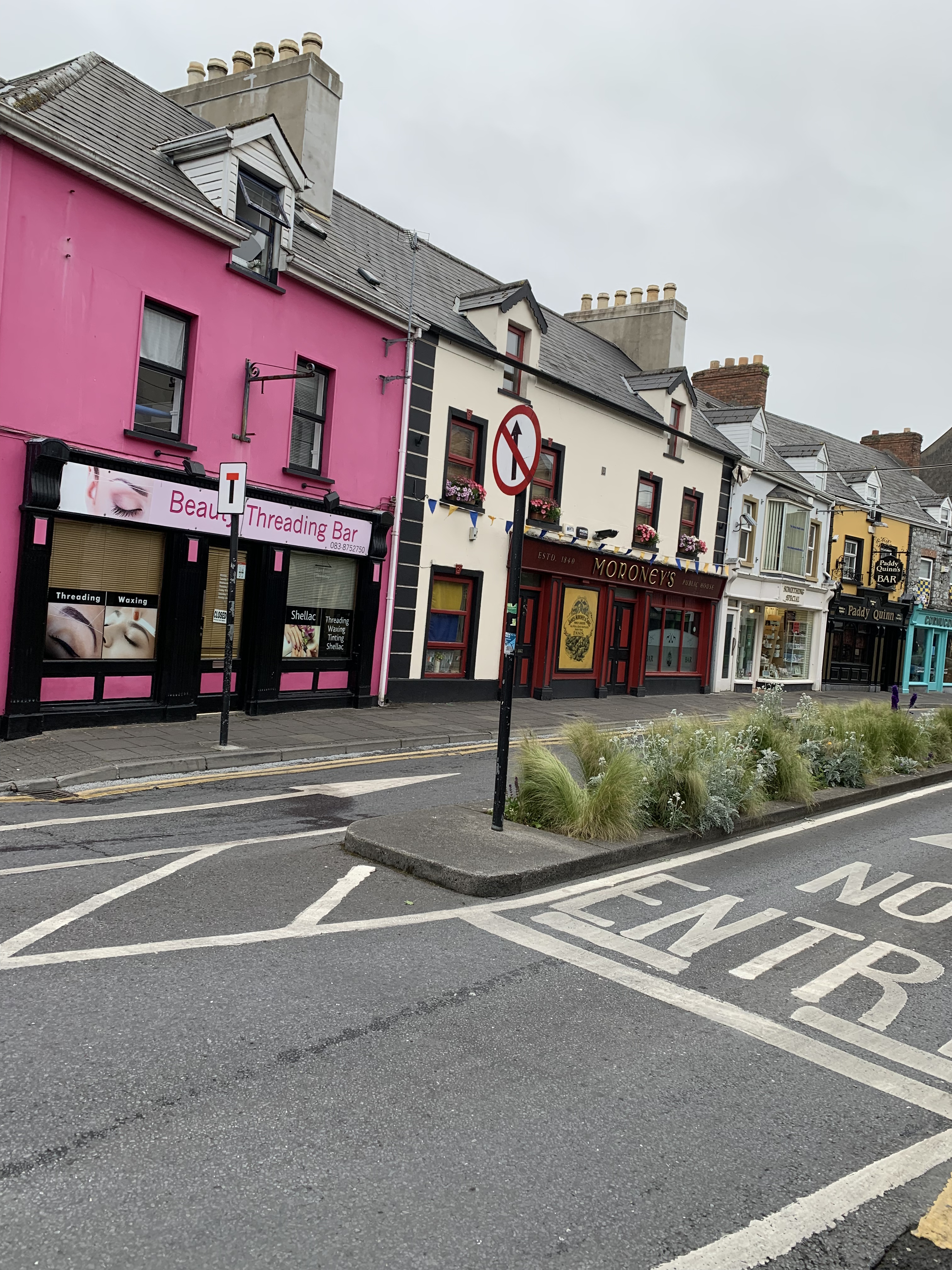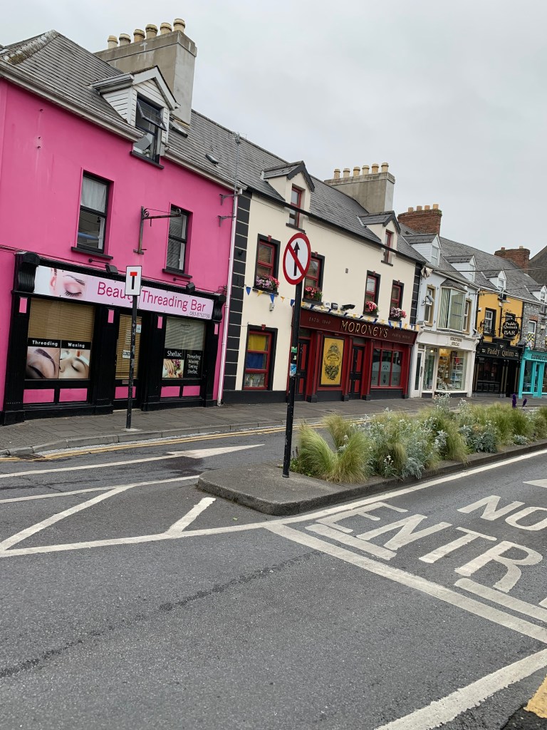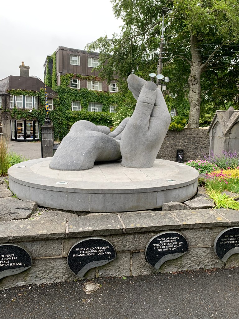 We drove to Ennis and parked, walking around the town center. It was about 7, and most businesses were closed, so we asked an older gentleman for a breakfast recommendation. His first comment — in a good natured way— ”I’m very angry.” ”Why is that?” ”The team lost yesterday.” (We think it was the County Clare hurling team, but who knows?) A woman passing by suggested the Old Ground Hotel. It was a lovely buffet and hot breakfast, and very reasonably priced. Greg enjoyed the ambience of the bar located next to the breakfast room. We did a bit more walking before heading out for the rest of the day.