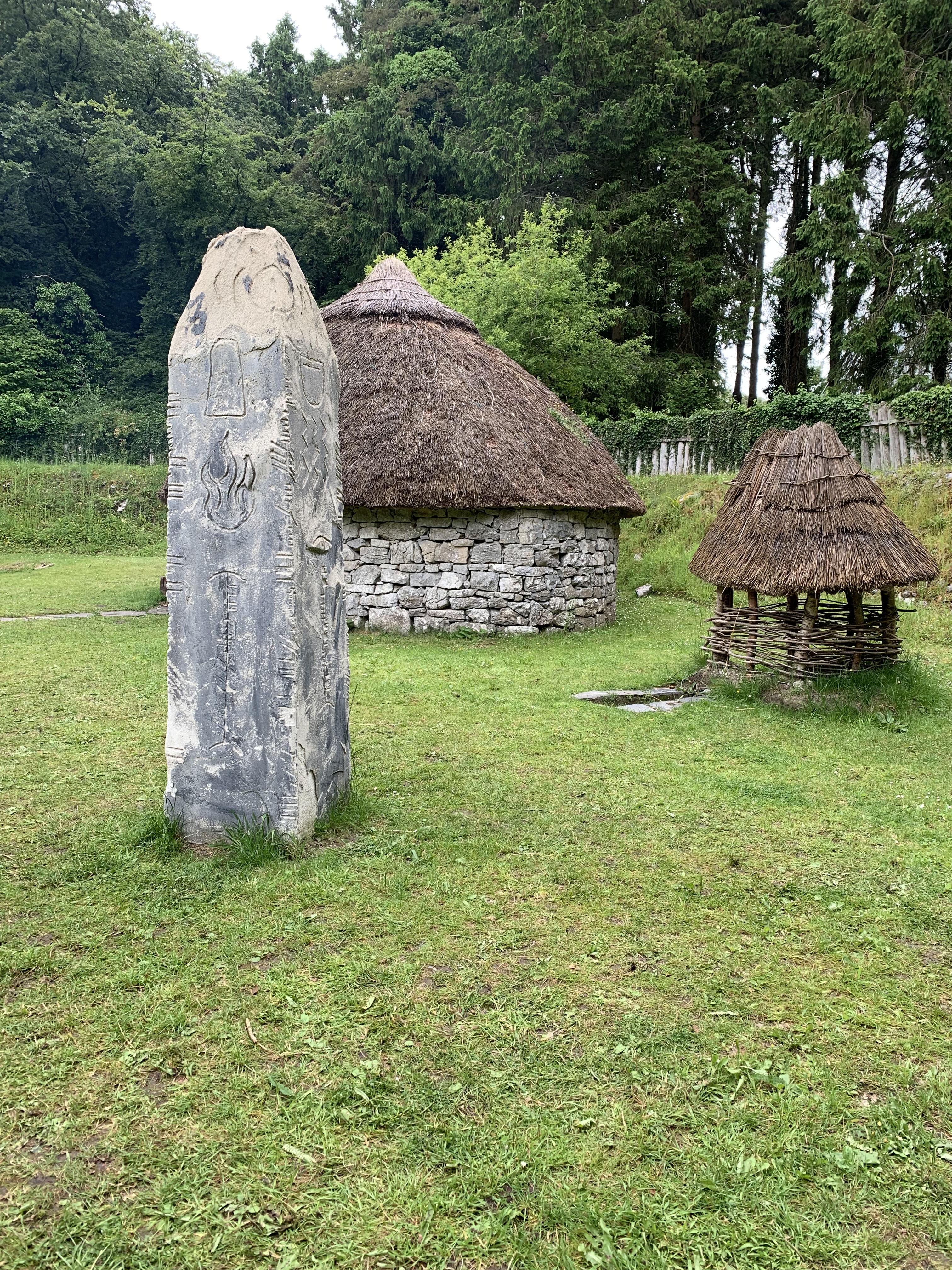 Next: Craggaunowen Castle/Outdoor museum: partially restored castle, built c. 1550, and other replications from the Bronze Age and Iron Age. Also located there is the Brendan Boat, built and sailed in the 1970s to prove that St. Brendan the Navigator MIGHT have journeyed to what is now North America in the 500s. We also learned Charles is good at playing skittles (the game with blocks, not the candy.)