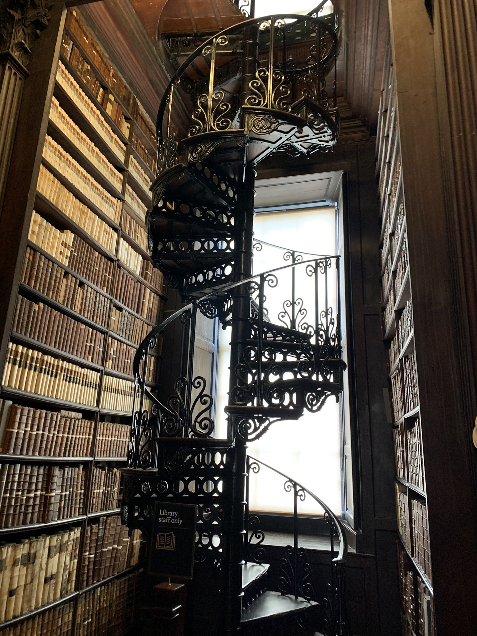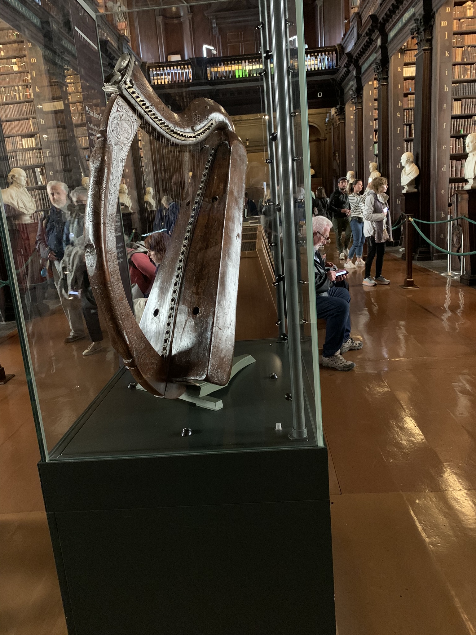 The tour includes the “Long Library.” Fascinating room with a huge collection of old books and 40 marble busts — of old white men, of course. However, they are finally adding some women! https://www.tcd.ie/news_events/articles/trinity-names/