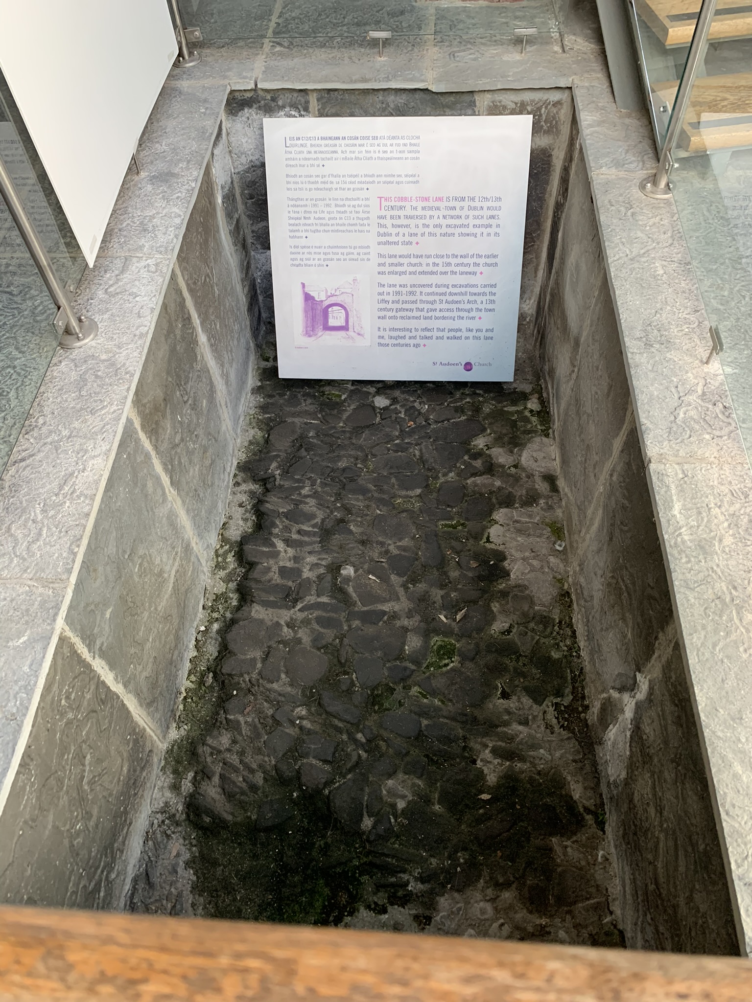 The traffic in Dublin was heavier than I had anticipated. In a fit of pre-trip planning, I reserved — and paid for — a parking space near Trinity College and the Temple Bar District. As we got close to the turn for the garage, all we could see was a very narrow cobblestone road — that couldn’t possibly be it? Well, it was…and due to the traffic, a wrong turn, and the system of one-way streets, it took 45 minutes to get back there. The cobblestone street was narrow, and the garage ramp even narrower. The garage reminded me a lot of those little tiny parking lots in NYC or Boston.