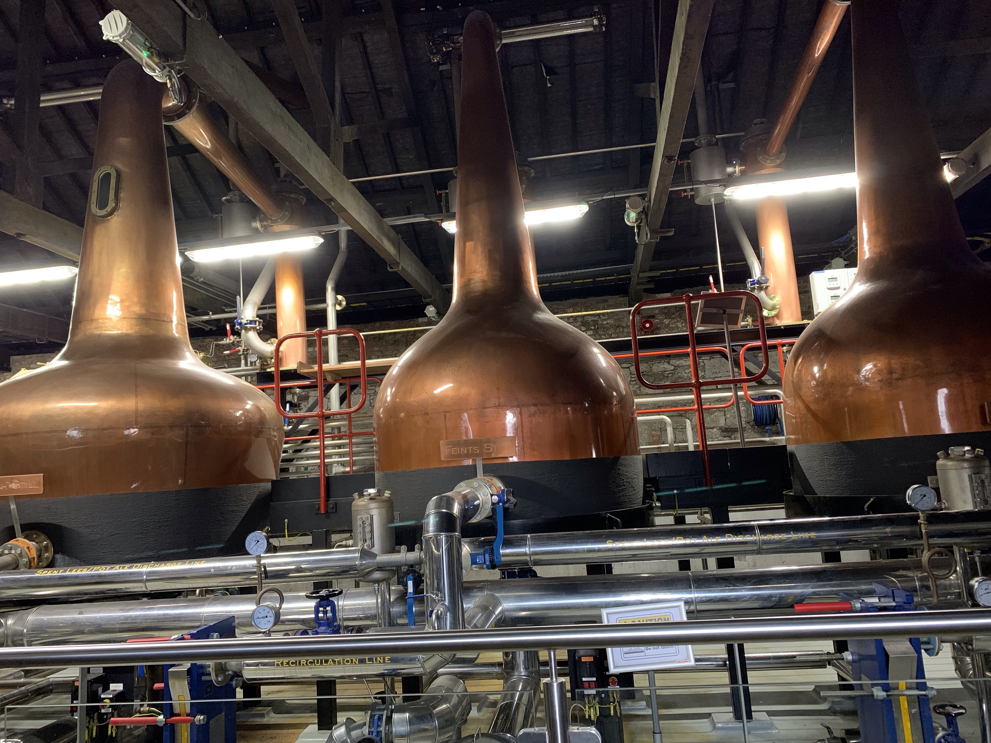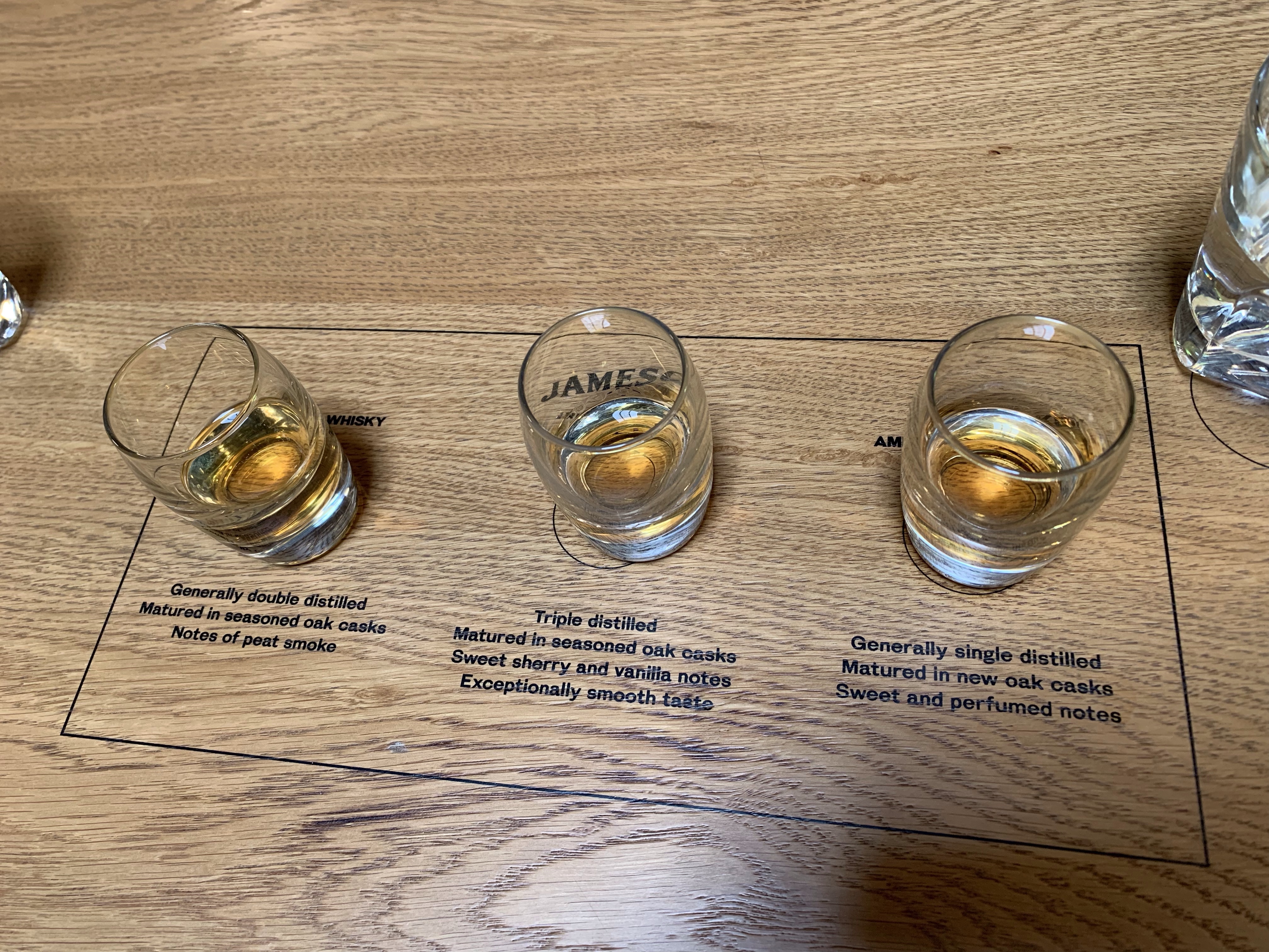 The tour of the distillery was very interesting. We saw lots of the old equipment and processing areas. To Charles’ great disappointment, we weren’t able to see the actual manufacturing area. After the tour and the tasting (which compared Jamesons with Johnny Walker Red and Jack Daniels), we had the opportunity for a premium tasting — four versions of Jamesons, with a guide describing everything. The participants were a bit noisy, so we didn’t hear everything the guide said, but it was fun.