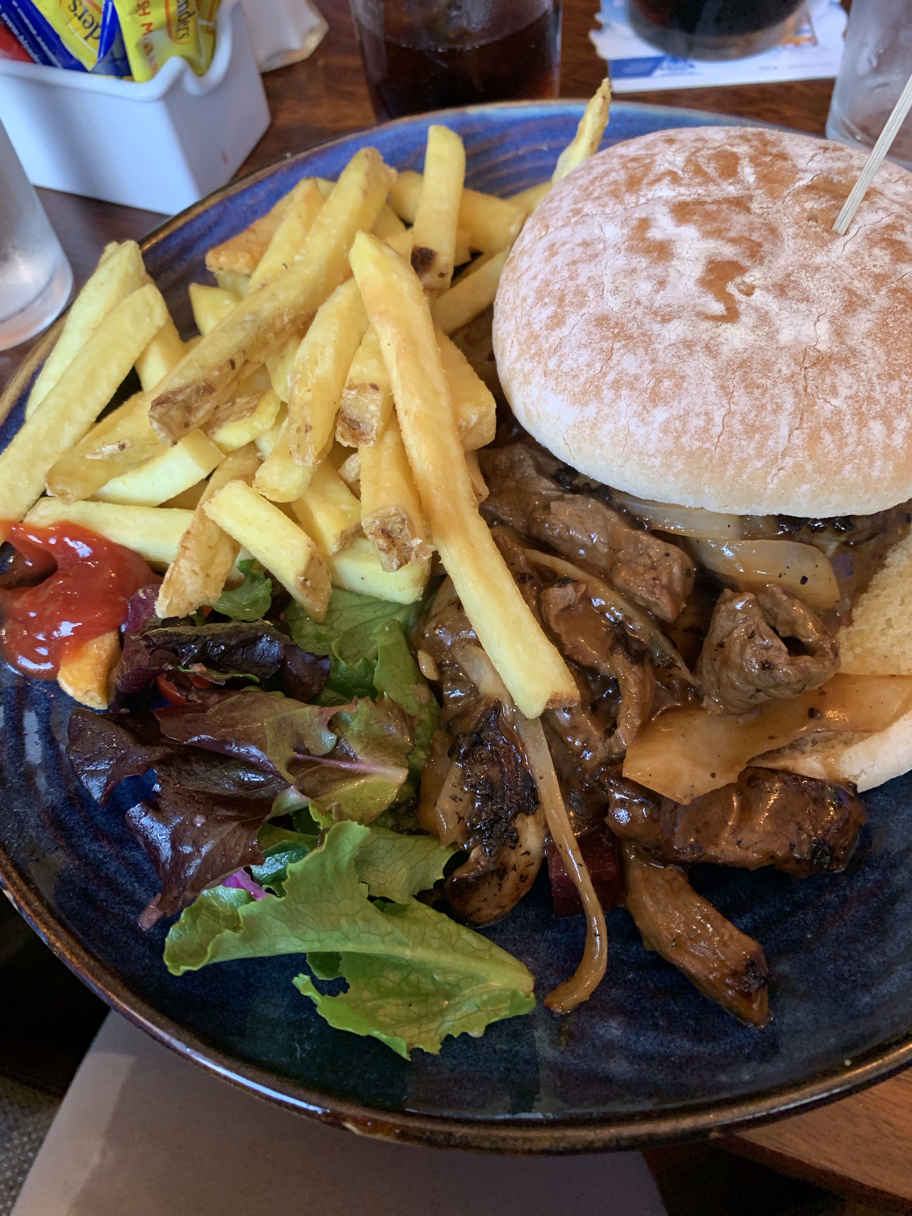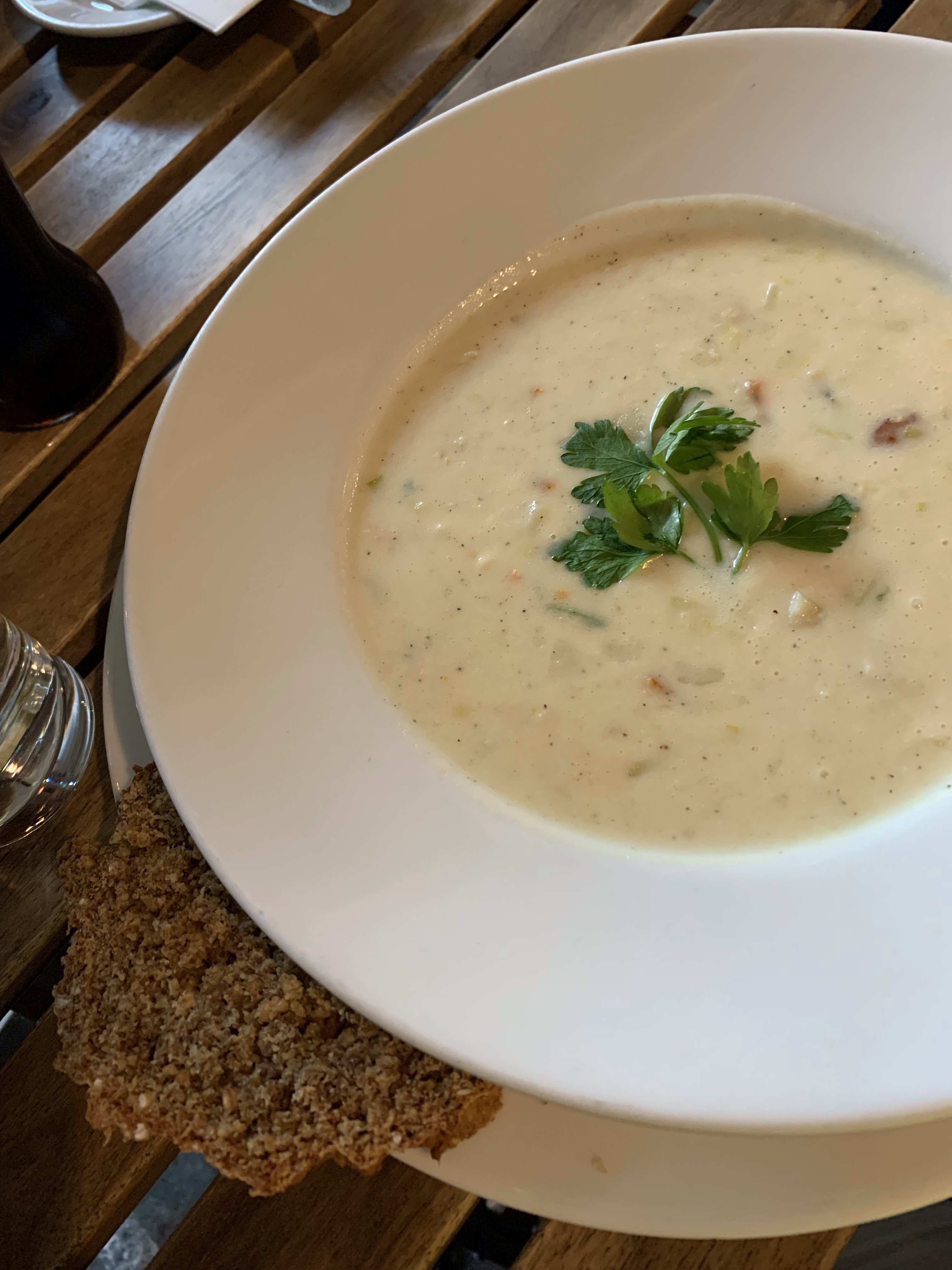 I only had a few sips of whiskey, but I was not fit to drive 🤪🤪. We found a place for lunch within walking distance. My salad, with local scallops, was amazing, as was the fish chowder.