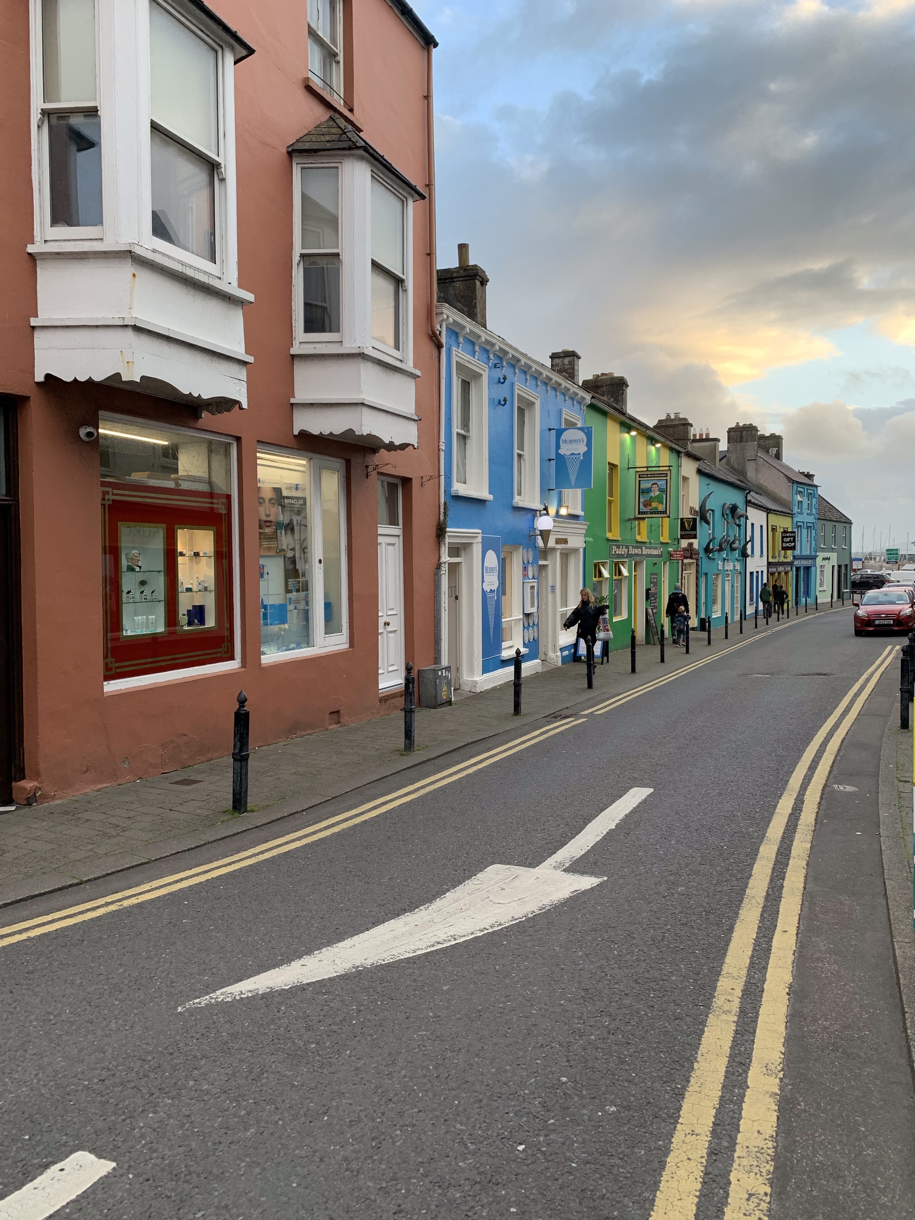 Then the drive to the Dingle Peninsula! We stayed at another AirBnb; this was an apartment attached to a farmhouse. The rooms were fine, the view out the back was spectacular. The pictures don’t do it justice. Dinner at a local pub. Charles tried a Murphy’s; he liked the Guinness a bit better. We were also wanted to try Beamish but didn’t find a pub with it available. At least one of the waitresses was terribly offended when we asked about it! (We have since found out the brewery was purchased by Heineken a number of years ago, so…) After dinner, we headed to another pub to listen to the music — Dingle is well know for the nightlife — but it was pretty crowded and we were tired, so we turned in early.