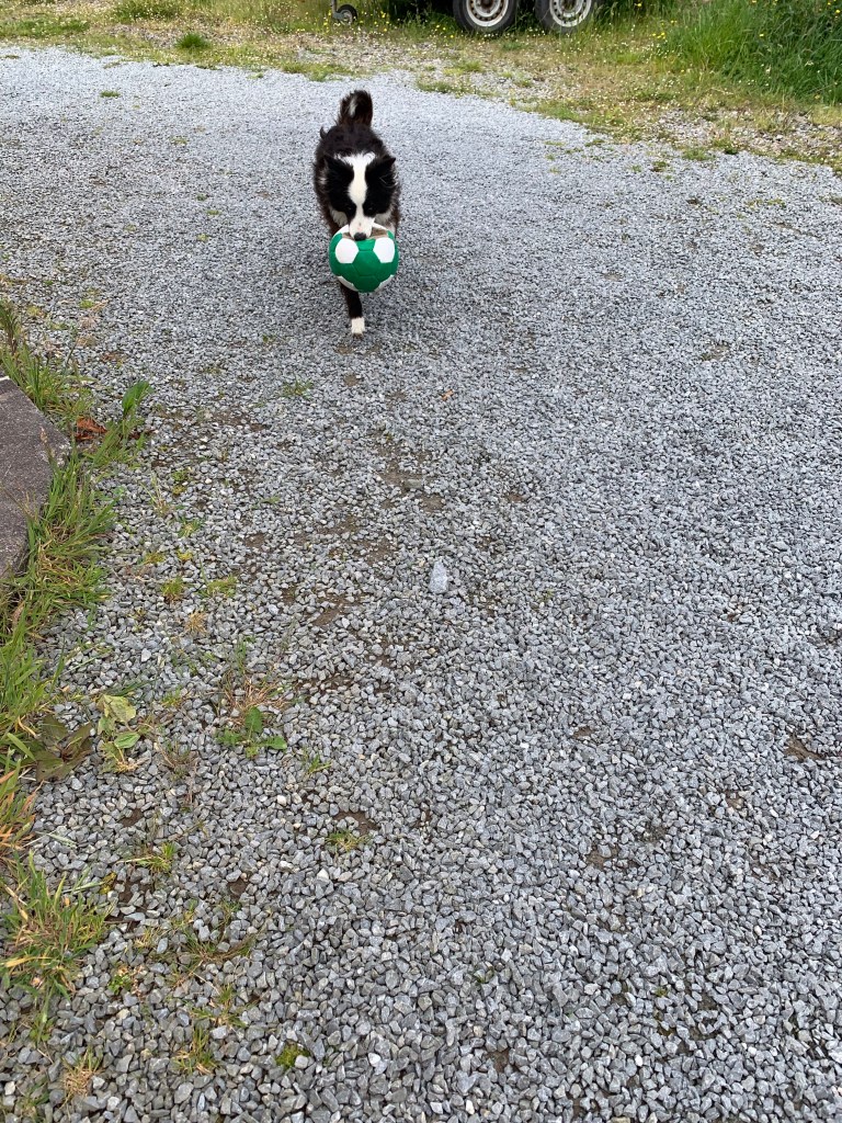 The farm dogs (Jess and Ivy) checked in with us —“knocking” on the outer door — around 9 am…did we want to play? They would have played fetch with that green soccer ball for hours. Our dogs have never figured out “fetch.” (But we love them anyway)