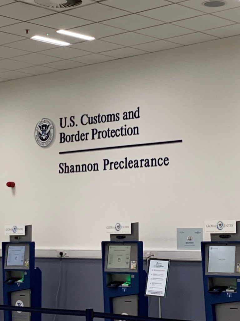 We made it to the Shannon airport in good time. We had to go through two checkpoints, and then “pre-clearance” for customs, which was awesome. There were many places to shop for those last minute souvenirs — and we did pick up a few more small things.