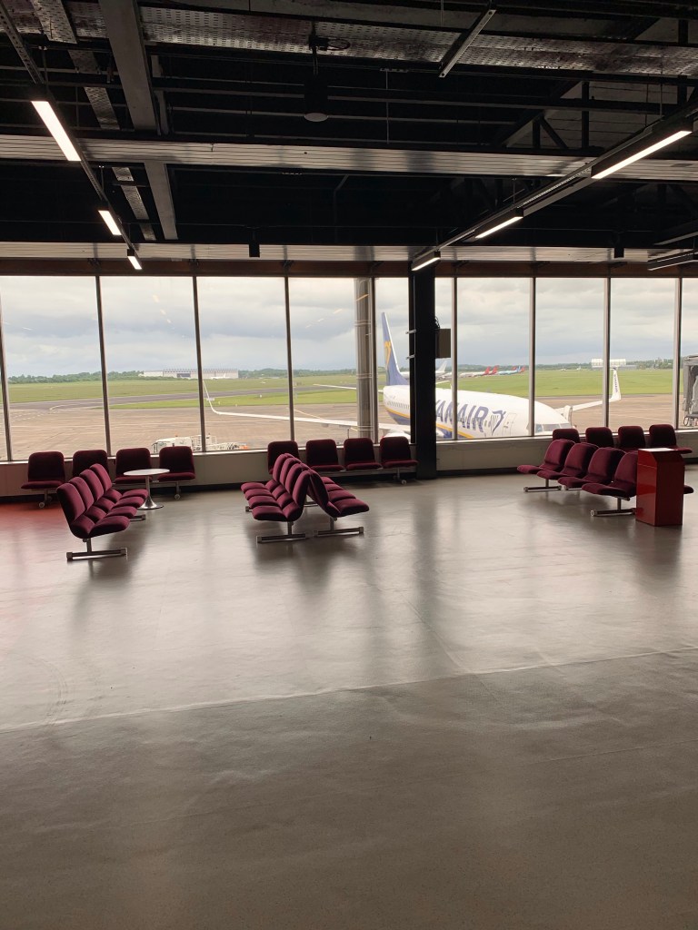 Unfortunately, our flight was delayed 2.75 hours. We boarded about 1.5 hours late, and then sat for another 1.25 hours. It turned out there was a medical emergency on the inbound flight, and they had to get the replacement equipment from Dublin. At least they told us “information will be available at…” and then they actually would say something, although it was frequently “we will update you again at…”