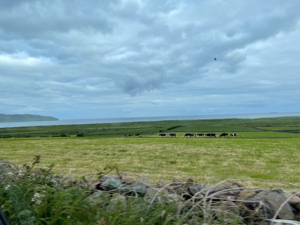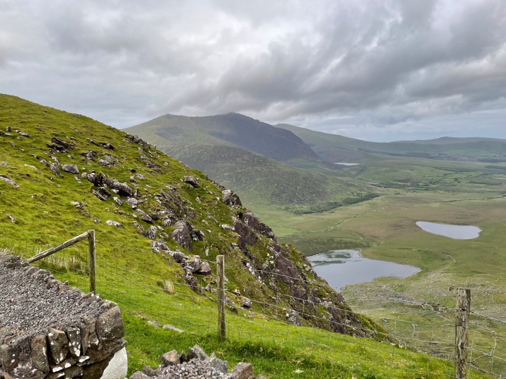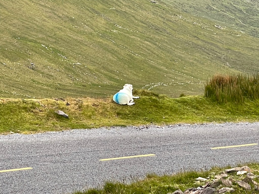 The route we took was through the Conor Pass. If I had been amazed by the views before, now I was simply awestruck. I’m sorry I was the driver, I had to keep my eyes on the very narrow and very high roads. And the sheep just wandered where ever they wanted. I’m glad we did this route after seven days of practice on the Irish roads. At least there weren’t any roundabouts LOL.