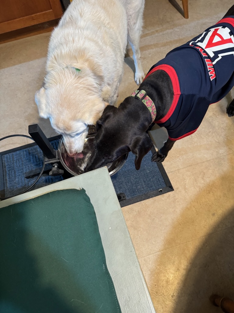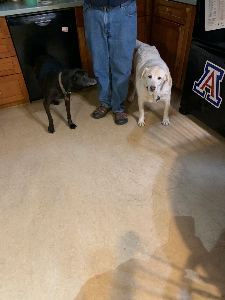 She and Lola got along well and Lola often initiated play fights with Maisie. Other than Ruby (our first dog), Lola hasn’t gotten along with any other dogs. One of Maisie’s favorite things to do with Lola was to flank Charles as he moved around the house. They were especially active in the kitchen — hoping that if they tripped someone up that they could snag a treat or two.