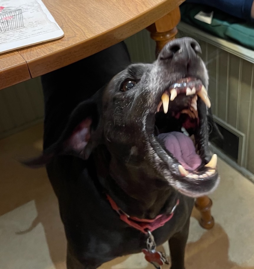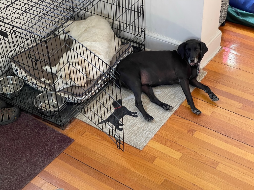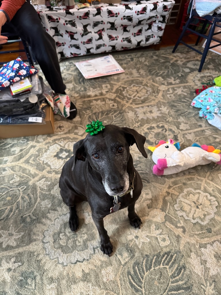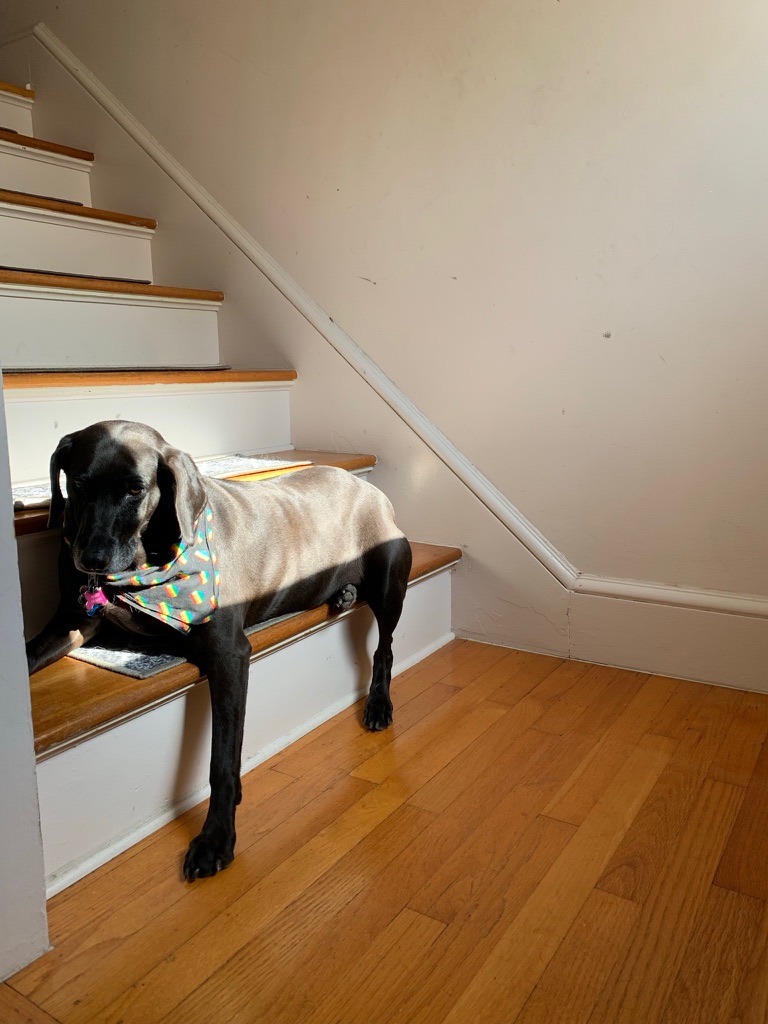 Maisie joined the family in April 2021 as a skittish, Velcro-like dog who needed to always be with her people, including sleeping with Wendy and Charles. She hated fireworks, thunder, and loud noises. Shortly after joining the family, something scared her on a walk; we couldn’t head down the sidewalk to the right ever again!