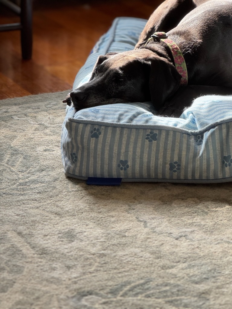 Just over a month ago, we discovered Maisie had “masses” (tumors) on her spleen and liver. We chose to make her as comfortable as possible. Last week she started a few new meds, perked up and began eating well. We thought we had more time, but unfortunately, just before 11 pm on Friday evening, she suddenly passed away. The vet had warned us that the tumors could burst and she would bleed out internally. Although scary for the humans, it was quick and painless for Maisie.
