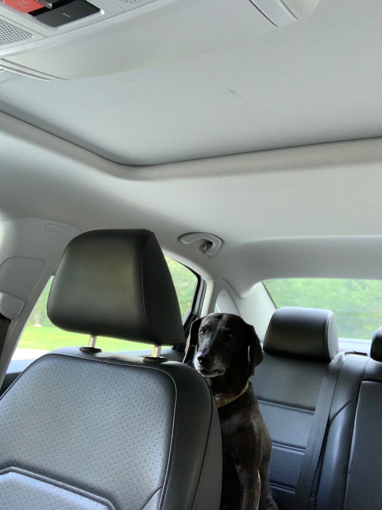 Maisie loved car rides. If our van was parked out front, she would walk around it, hoping to be let in. She was a “practice dog” at SUNY Cobleskill for two semesters and especially loved the car rides back and forth.