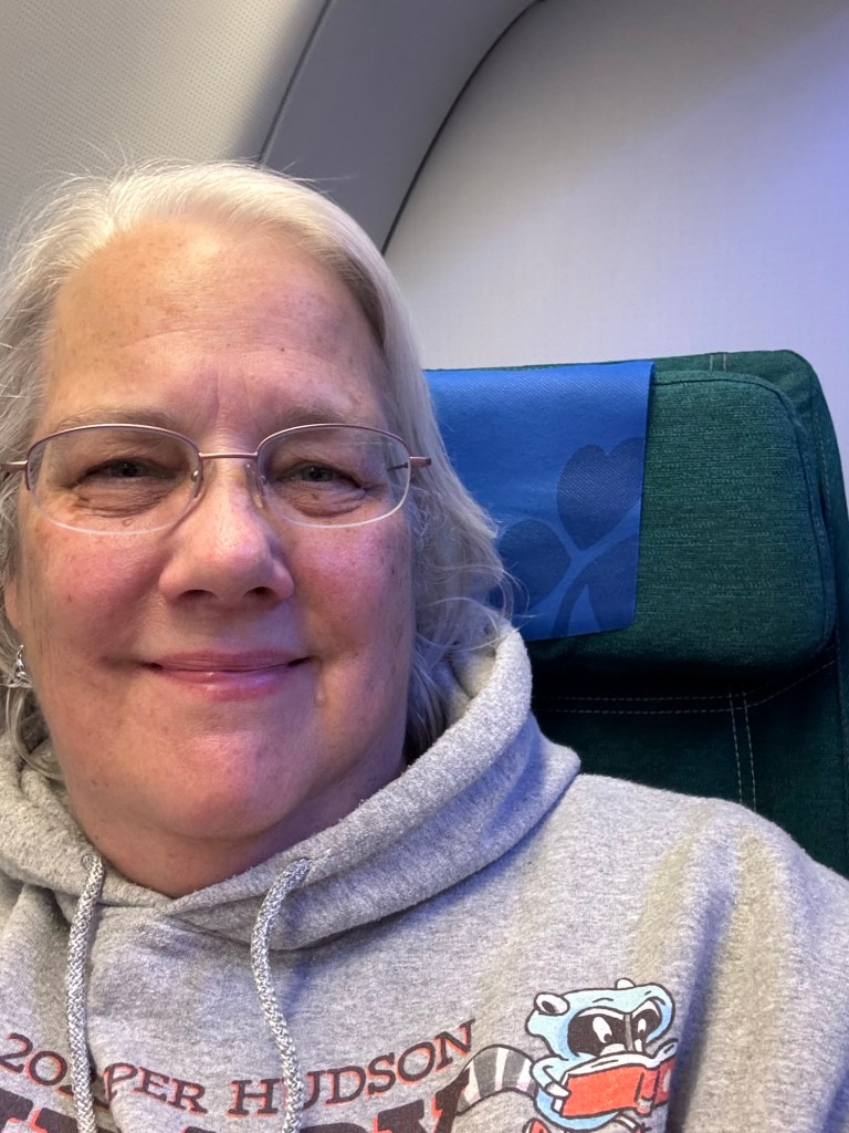 The flight from Boston to Dublin was fine. We departed Boston early, and arrived in Dublin early (8 am local time.) I had a lovely seatmate, M., returning home to Ireland for a visit. She had moved to Boston in the late 1980s, right around the time I graduated college. We had fun comparing notes about how much Cambridge and Boston have changed and how different Ireland is now. Because my seatmate was a woman, I was less worried about sleeping. (My female friends know what I’m talking about.) I got perhaps 3.5 hours of sleep on the 6 hour flight.