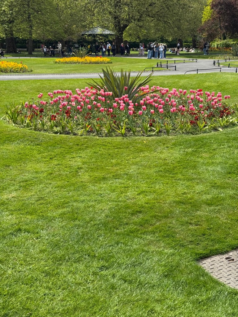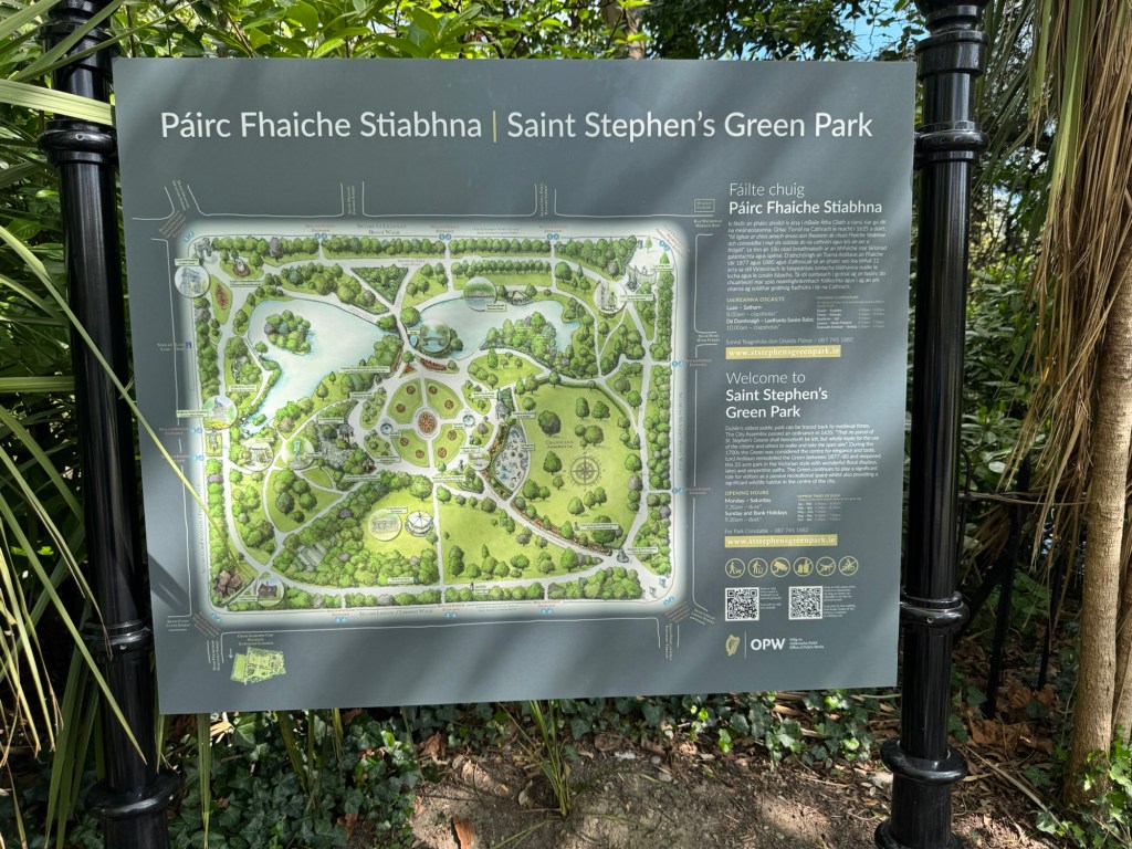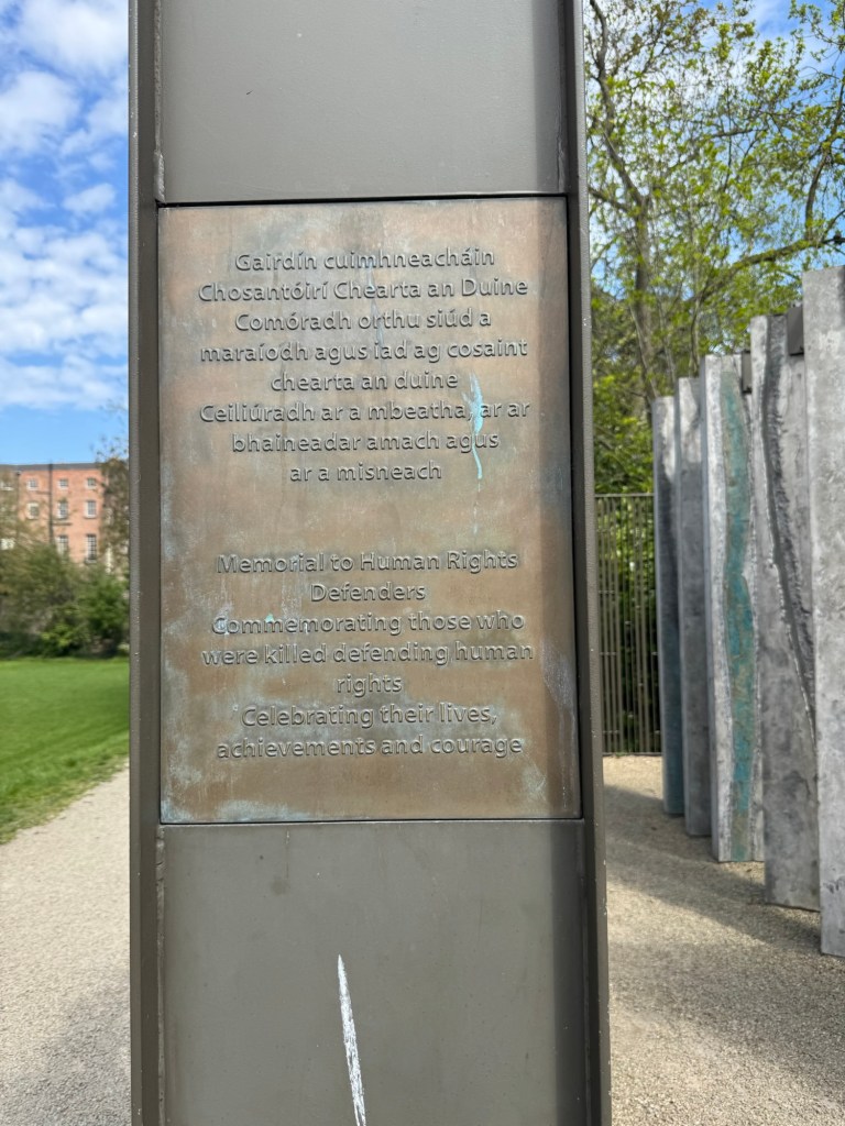There is a great express bus that goes between the airport and Dublin, and cost €16 round-trip. I had told the ticket seller that I wanted to get off near St. Stephen’s Green. I discovered a lovely park, Iveagh Garden, right next to the bus stop. Definitely a hidden gem in Dublin. I was too early for the rose garden, but lots of interesting things to see. There was a very sobering memorial dedicated to defenders of human rights, an important  reminder of how critical it is to take a stand.