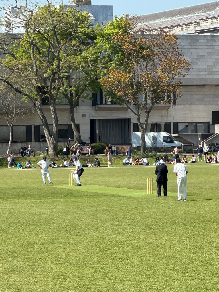 Next, I found a small takeout place for my lunch. I made my way to St. Stephen’s Green with the intention of finding a spot to eat, however, today was apparently the first very nice spring day and the park was very crowded with both locals and tourists. Also, a lot of birds who looked like they’d be happy to take my lunch from me. So I kept walking and found Trinity College Dublin. Made my way around to the athletic fields and watched a little bit of cricket. don’t know the rules of cricket, so I had no idea what was going on, but it was fun to just hang out and watch.