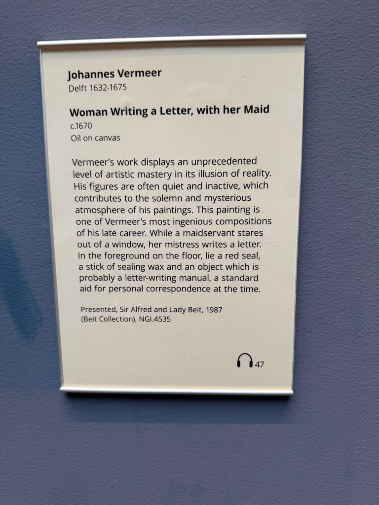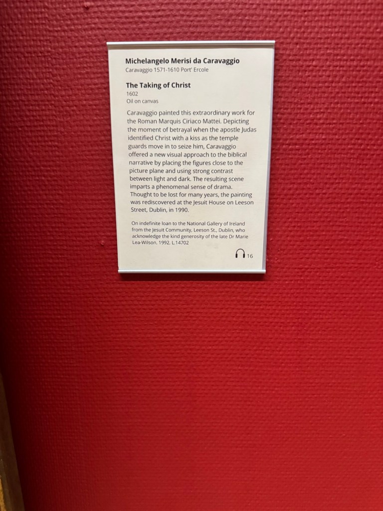 My new friend from the plane ride had recommended the National Gallery of Ireland, so that became my museum stop. It was definitely worth the visit. I saw a Caravaggio (which had been “missing” and was found in 1990) and a Vermeer. If you read the notes with each of the paintings, you will see there are at least two artists with a weird fascination with bodily fluid fluids.