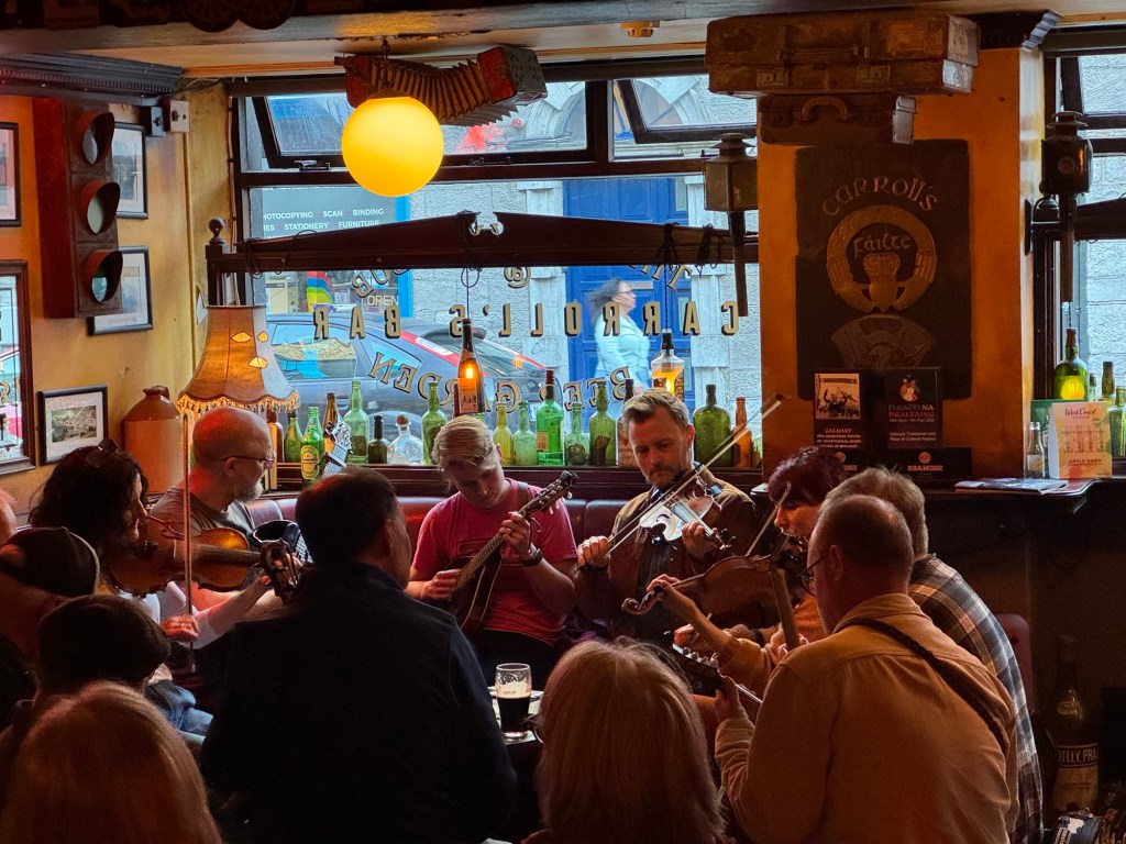 It was another gorgeous day, so I could not bear the thought of heading back to the hotel room. I walked down towards the Spanish Arch and watched the River Corrib flow by for a few minutes. Had a chicken sandwich and fries for dinner, and then went to a pub for a “trad session,” which included Brian, Rose, and Caroline from House of Hamill. It’s not a regular show, it’s more like a group of friends getting together and just playing traditional Irish music; it felt like eavesdropping on a private party.