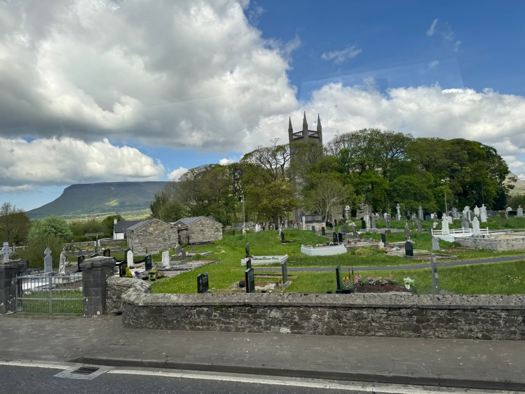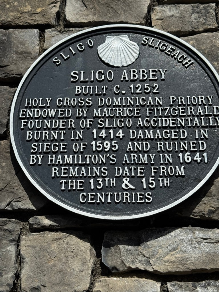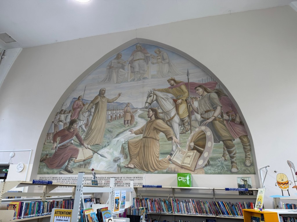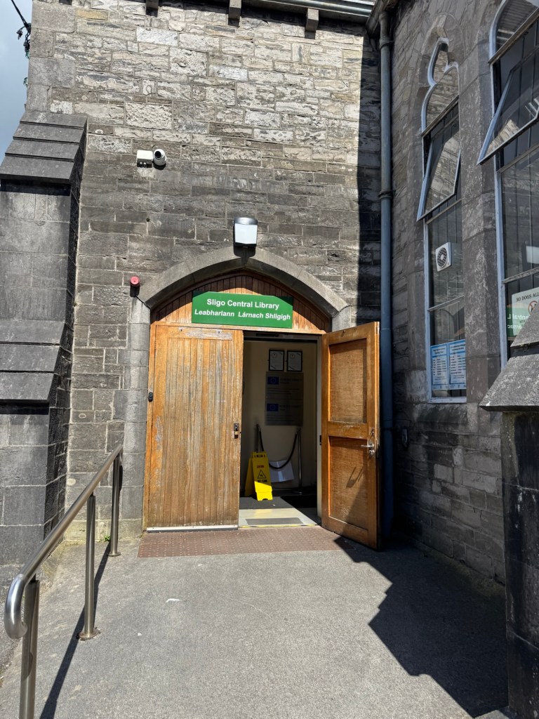 After another hour of yet more gorgeous scenery, we stopped in Sligo. A real, not very touristy town. We saw people of walking around, just doing their thing. Again, I grabbed a sandwich and checked out (a very small piece) of the town. There are ruins of an Abbey, which had an admission fee (and I didn’t have a lot of time) so I just took pictures from the outside. I also found the library. It is in a converted church, dating from 1780. The library has been in that building since the early 1940s. I think the librarian was a little puzzled by my visit; I said was popping in because I love libraries. He did share with me an interesting pamphlet on the history of the church.