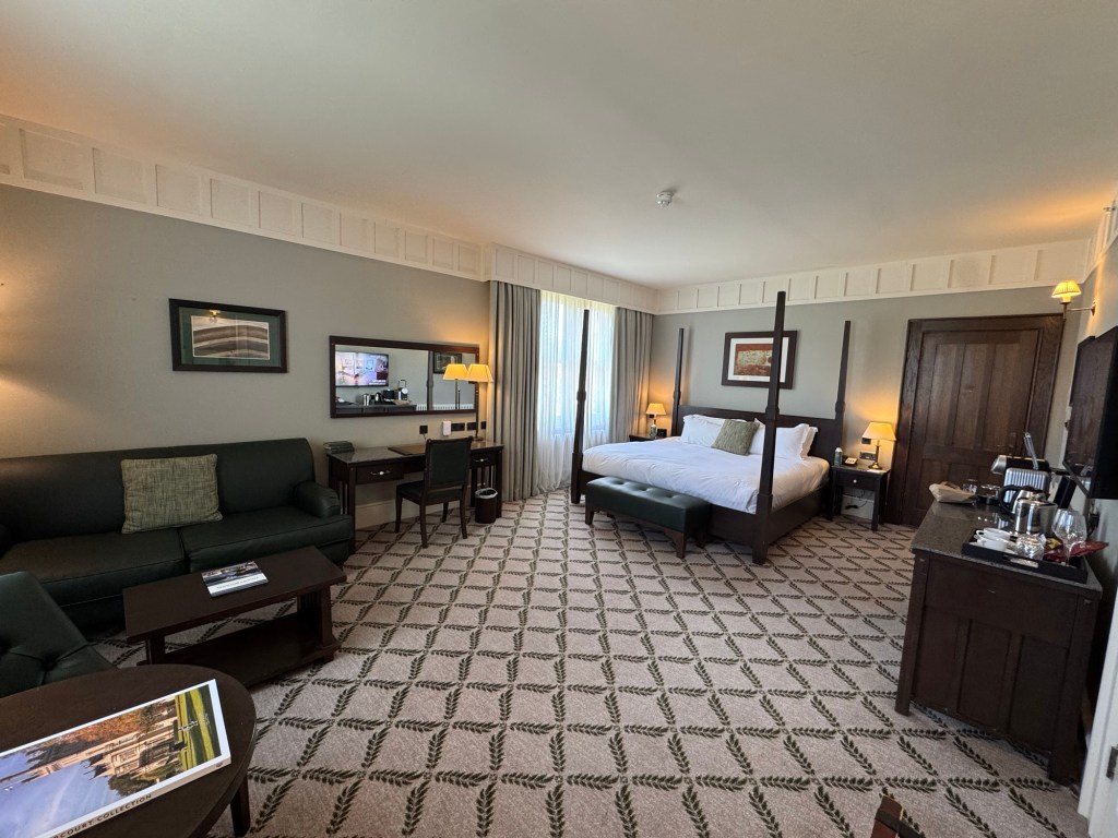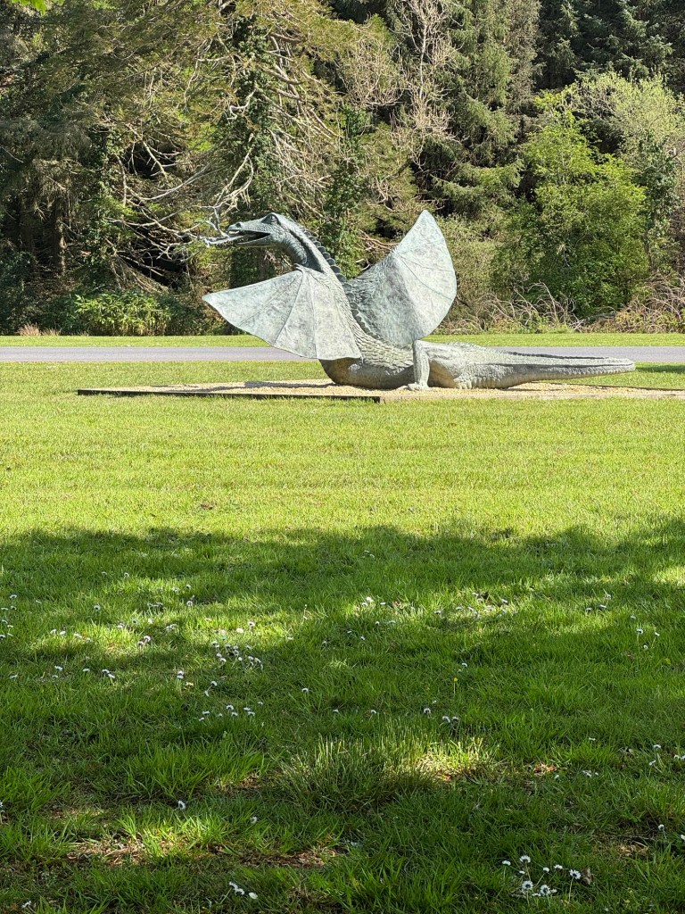 Our arrival at Lock Eske Castle Hotel was accompanied by HoH playing a beautiful Irish tune. The original castle building dates from the 1474; it has been destroyed and rebuilt several times, reopening as a hotel in 2007. There are interesting sculptures and pretty gardens around the grounds.