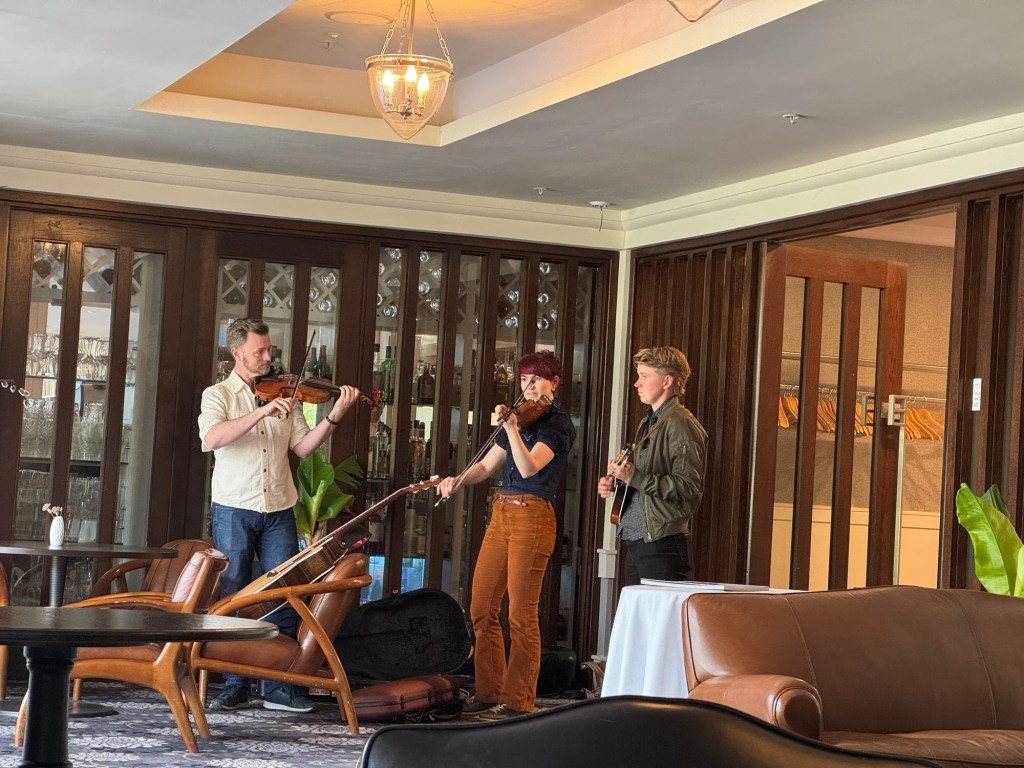 After dinner, several of us listened to a Celtic choir singing in the lobby for a few minutes. Their sound was incredible, bouncing off the castle walls. It was delightful to hear “Take the A Train.” The highlight of the evening was the one hour concert House of Hamill played for us in the downstairs bar.