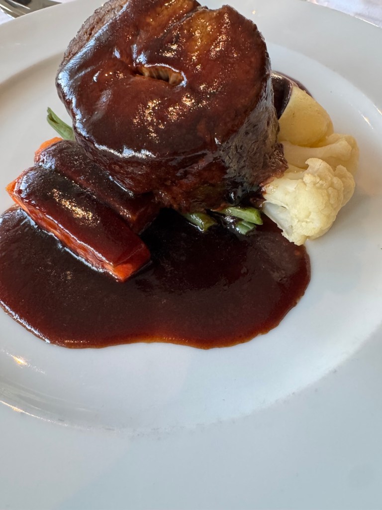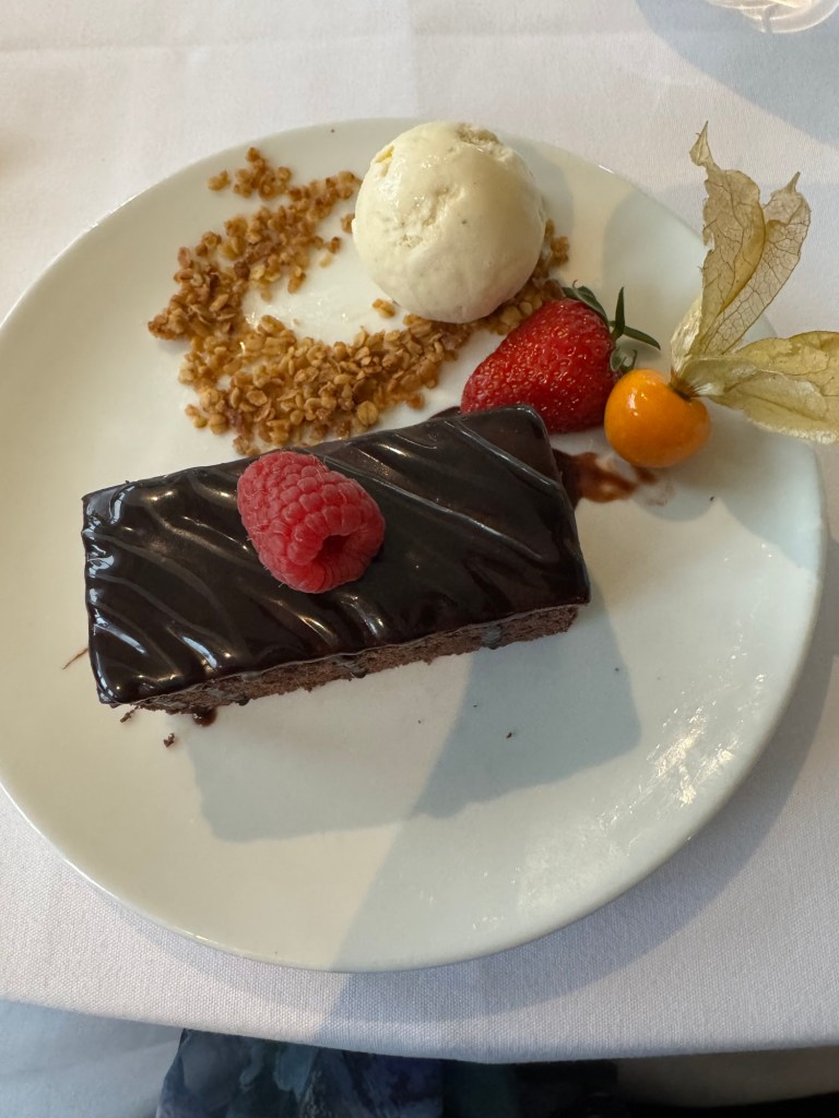 Our first group dinner was tonight. Fun to get to know more people. The food was very good. I forgot to take a picture of my appetizer; it was a mushroom puffed pastry.