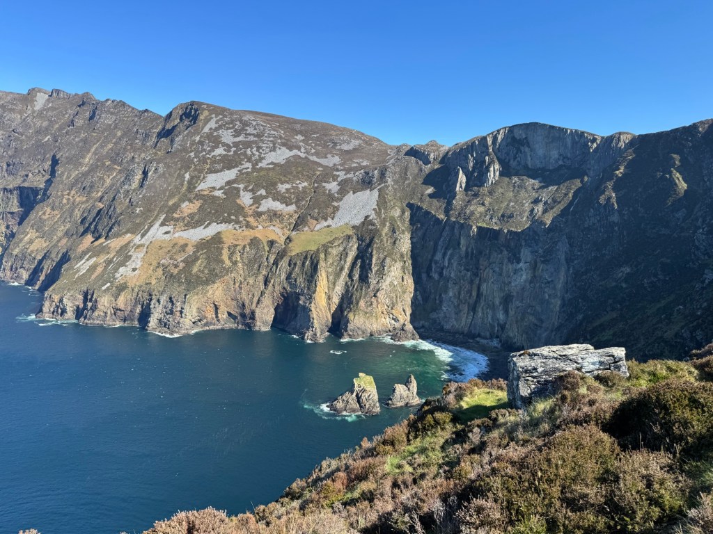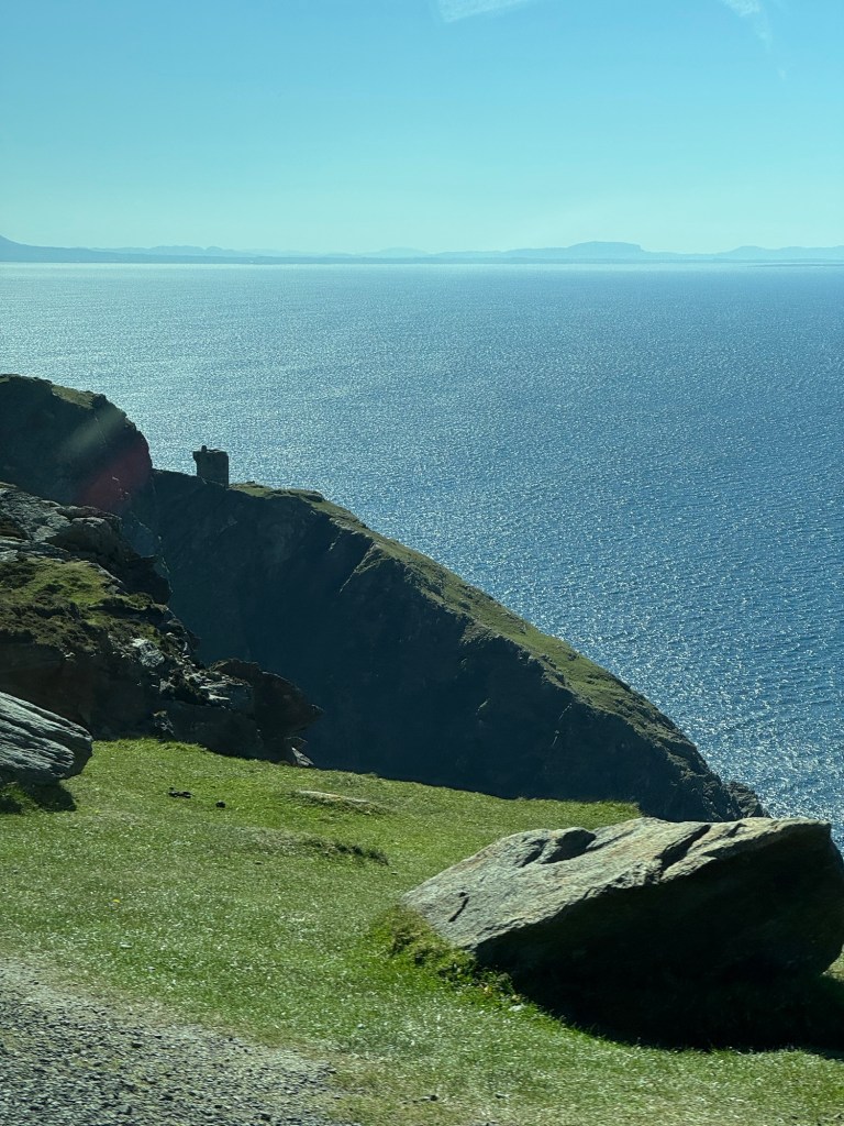 We drove to Slieve League to see the highest cliffs in Ireland. I climbed only a short way up the steep hill: the stone steps were at different angles and heights, and it was extremely windy. I tried to put on my windbreaker but ironically, it flapped too much in the wind and I couldn’t get it on.
